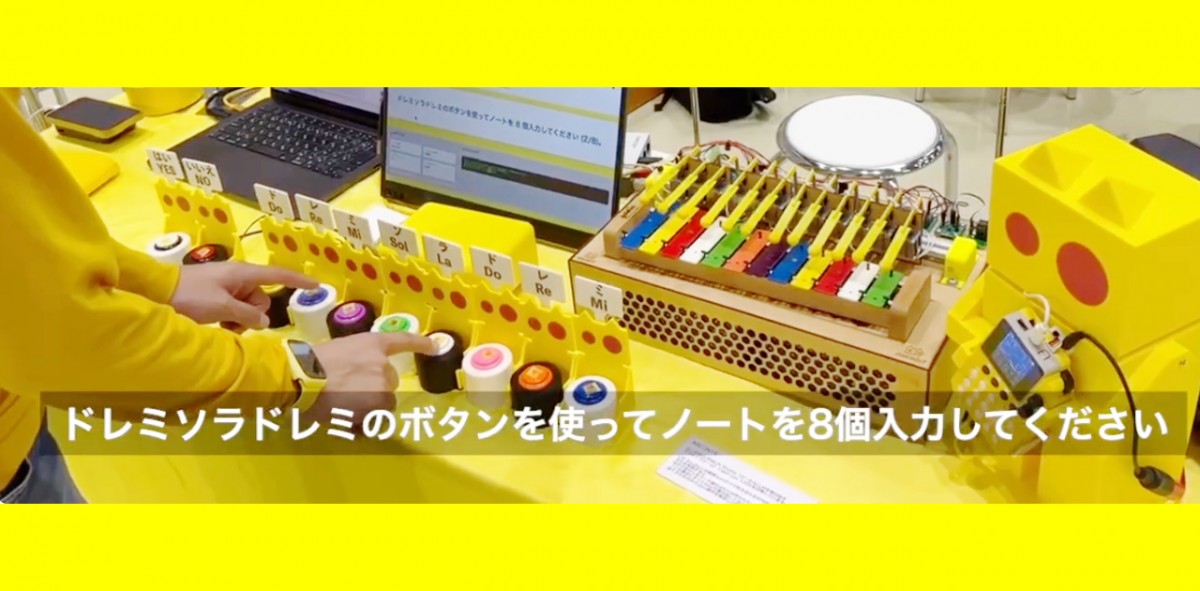 メロディは体験する人にドレミを弾いてもらいます。 あえて鍵盤ではなくボタンで。ここにカラクリがありますが後で説明します。